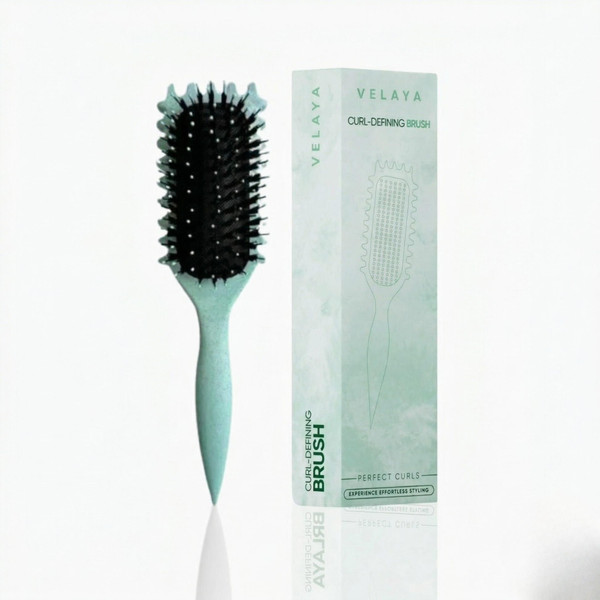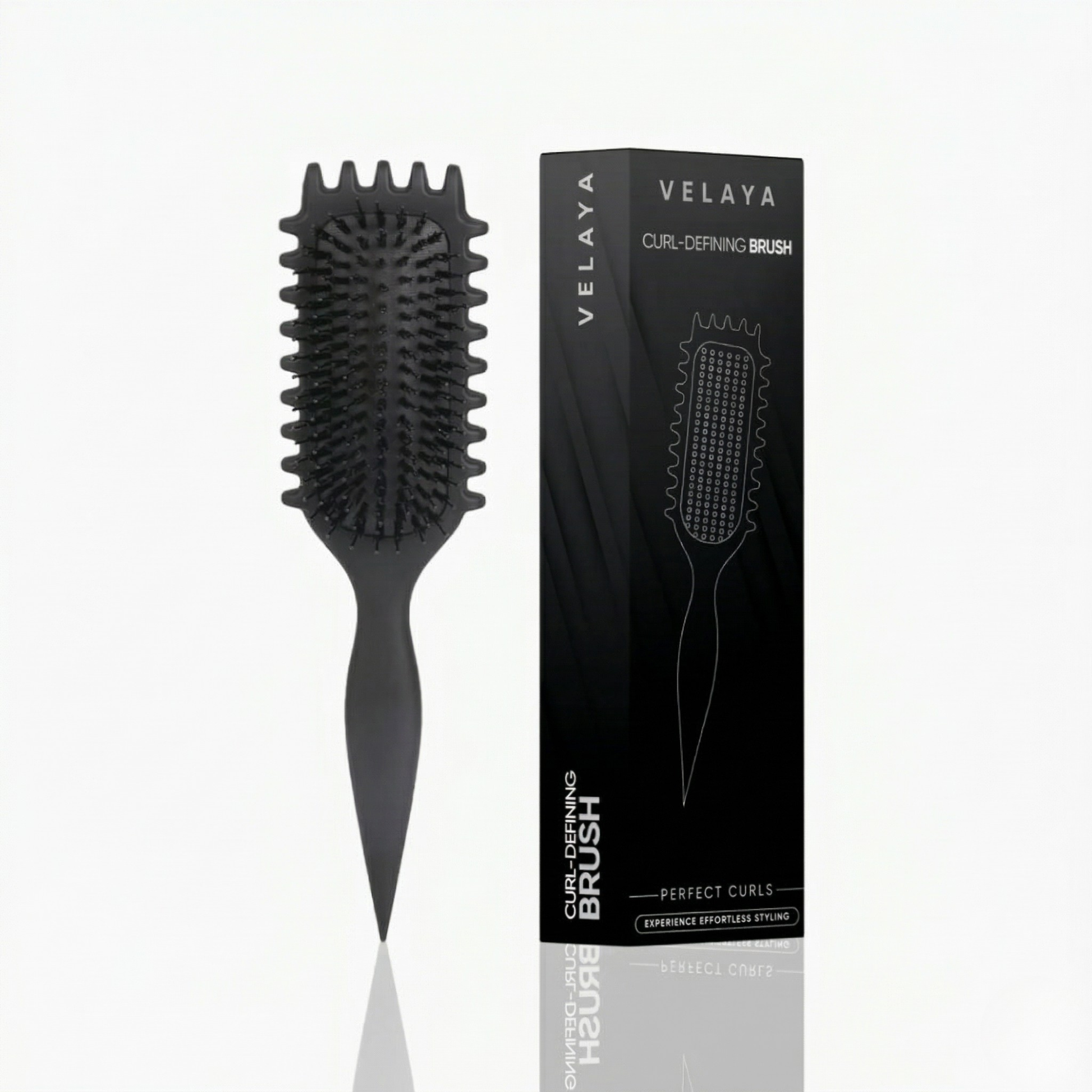 Omarm je krullen met een tool die de natuurlijke schoonheid van je haar versterkt in plaats van ertegen te vechten. De Velaya Kruldefiniërende Borstel werkt in harmonie met de textuur van volwassen haar en helpt je om gedefinieerde, pluisvrije krullen te creëren zonder de stress van traditionele stylingmethodes.